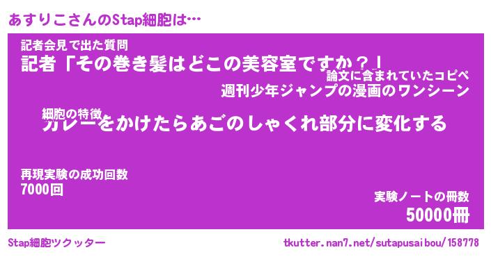 | 伝説のあだ名 | 『封印されしスナイパーあすりこ』 |