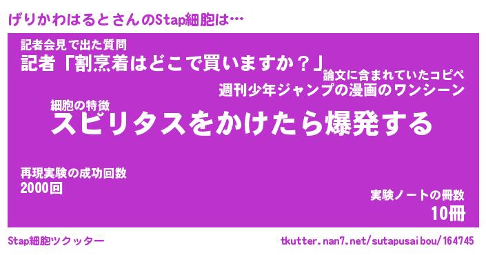 | ツイッター | げりかわはるとさんのツイッターID『namakemono_man』 |