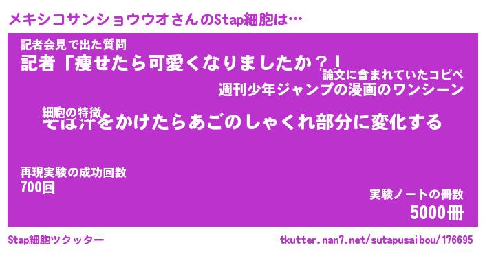 | 欧米人風あだ名 | 『マイケルメキシコサンショウウオ』 |