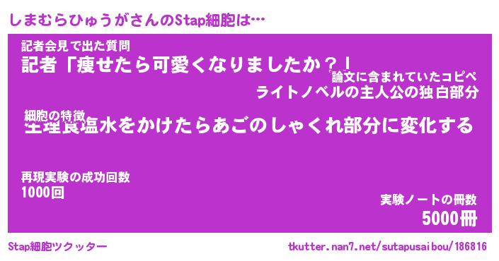 | ヘコむあだ名 | 『しまにー』『なまこ酢』『しまっ子』 |