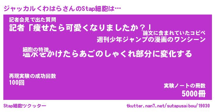 | 胡散臭い通販商品みたいなあだ名 | 『モテモテ間違いなし霊験あらたかなお札…その名も「ジャッカルくわはら」』 |