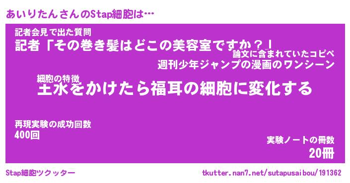| 胡散臭い通販商品みたいなあだ名 | 『必ず成功する霊験あらたかなお札…その名も「あいりたん」』 |