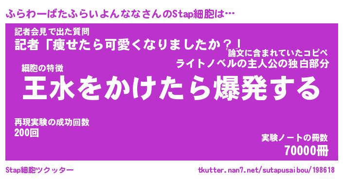 | 胡散臭い通販商品みたいなあだ名 | 『必ず成功する霊験あらたかなお札…その名も「ふらわーばたふらいよんなな」』 |