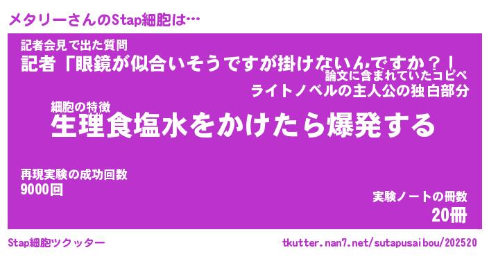 | 意味不明あだ名 | 『ペロリンメタリー』『永久保存メタリー』 |