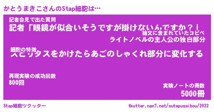 | 伝説のあだ名 | 『封印されしスナイパーかとうまきこ』 |