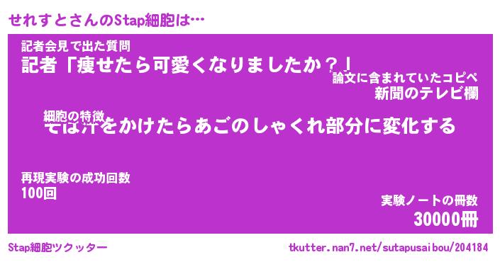 | ヘコむあだ名 | 『せれっふぃ~』『なまこ酢』 |