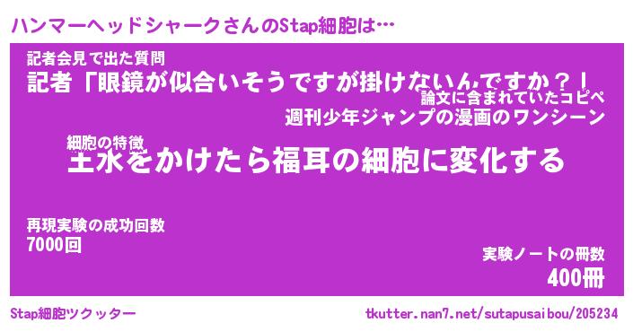 | 欧米人風あだ名 | 『マイケルハンマーヘッドシャーク』 |