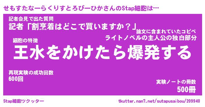 | 胡散臭い通販商品みたいなあだ名 | 『必ず成功するブレスレット…その名も「せもすたなーらくりすとろびーひか」』 |