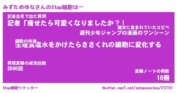 | 胡散臭い通販商品みたいなあだ名 | 『必ず成功するブレスレット…その名も「みずためゆな」』 |