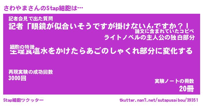 | ポケモン風あだ名 | 『サワチュウ』『サワヤダネ』 |
