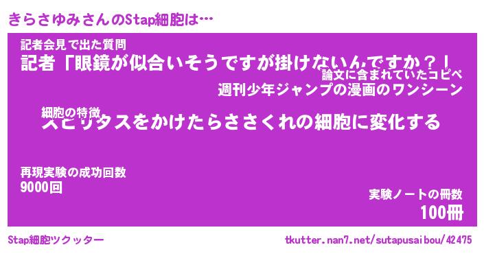 | 伝説のあだ名 | 『不死鳥のスナイパーきらさゆみ』 |