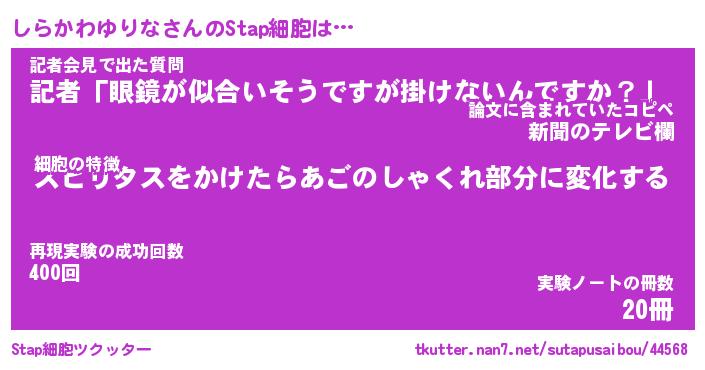 | 伝説のあだ名 | 『封印されしスナイパーしらかわゆりな』 |