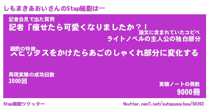 | 胡散臭い通販商品みたいなあだ名 | 『億万長者になれるブレスレット…その名も「しもまきあおい」』 |
