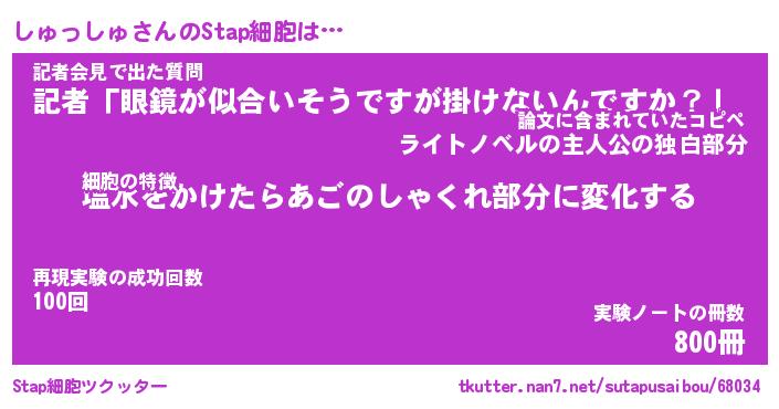 | ヘコむあだ名 | 『しゅもー』『なまこ酢』『しゅお』 |