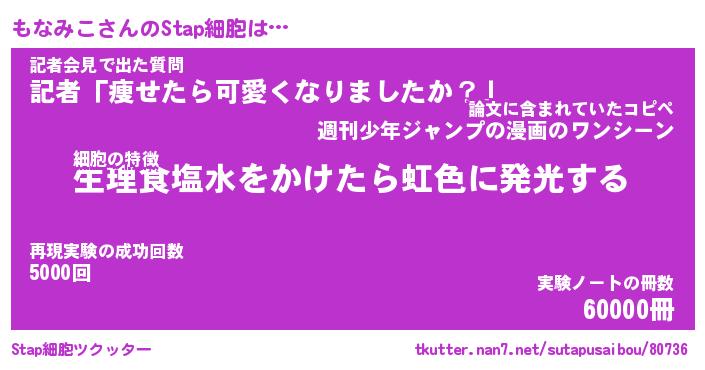 | 意味不明あだ名 | 『ペロリンもなみこ』『永久保存もなみこ』 |