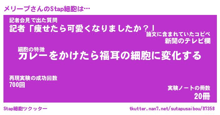 | ヘコむあだ名 | 『メリにゅー』『なまこ酢』『メリを』 |