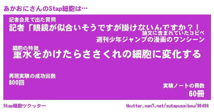 | 意味不明あだ名 | 『ペロリンあかおに』『永久保存あかおに』 |