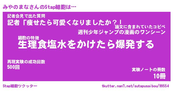 | 胡散臭い通販商品みたいなあだ名 | 『必ず成功する霊験あらたかなお札…その名も「みやのまな」』 |