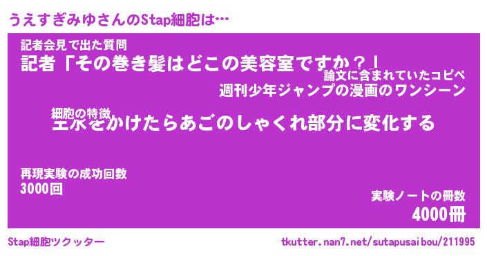 | 伝説のあだ名 | 『伝説のスナイパーうえすぎみゆ』 |