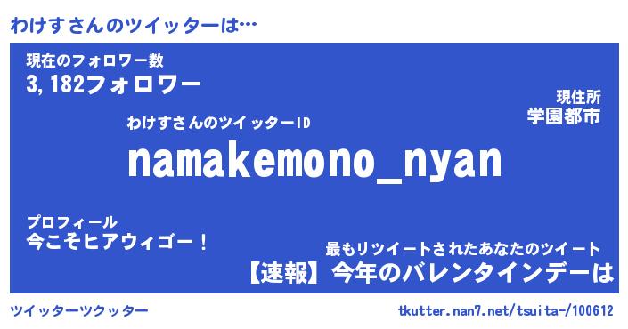 | 意味不明あだ名 | 『ペロリンわけす』『わけすフォーエバー』 |