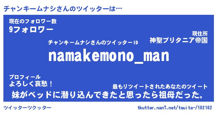 | 男性向けラノベタイトル風あだ名 | 『チャンキームナシアートオンライン』 |