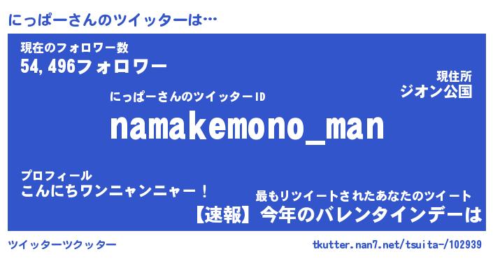 | 欧米人風あだ名 | 『マイケルにっぱー』『ウサインにっぱー』 |