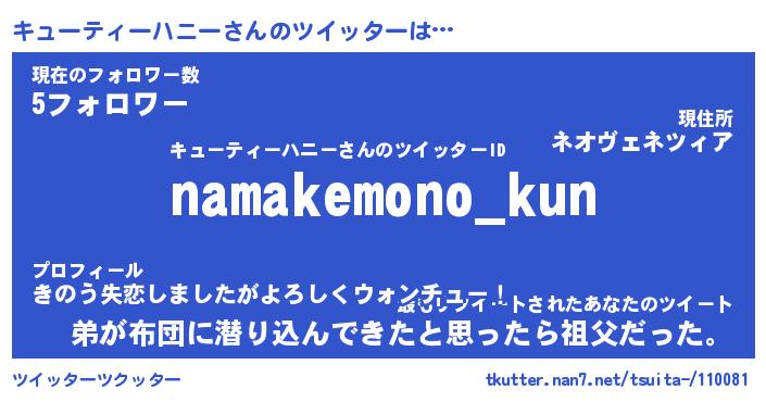 | ヘコむあだ名 | 『キュもー』『なまこ酢』『キュを』 |