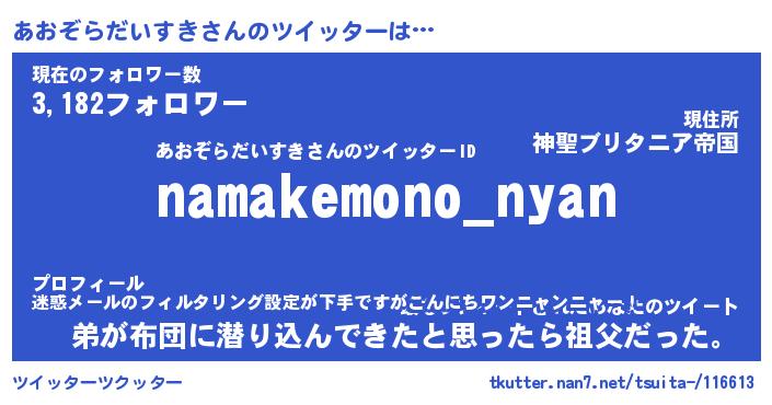 | 伝説のあだ名 | 『封印されしスナイパーあおぞらだいすき』 |