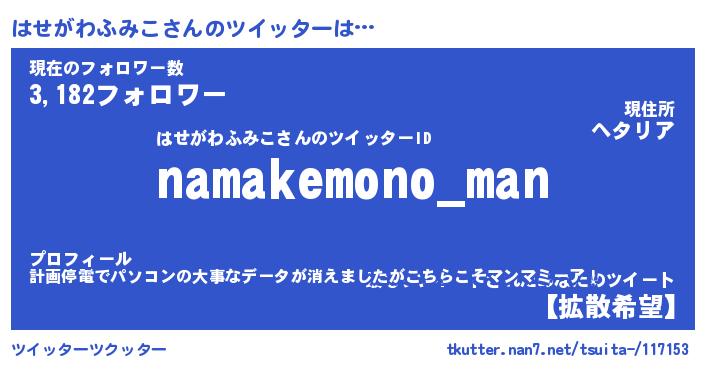 | ヘコむあだ名 | 『はせにー』『なまこ酢』『はせ太郎』 |