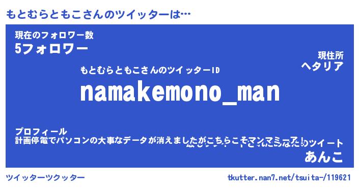 | 男性向けラノベタイトル風あだ名 | 『モトムラトモコアートオンライン』 |