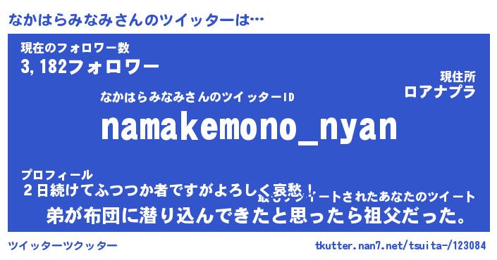 | ヘコむあだ名 | 『なかっふぃ~』『なまこ酢』 |