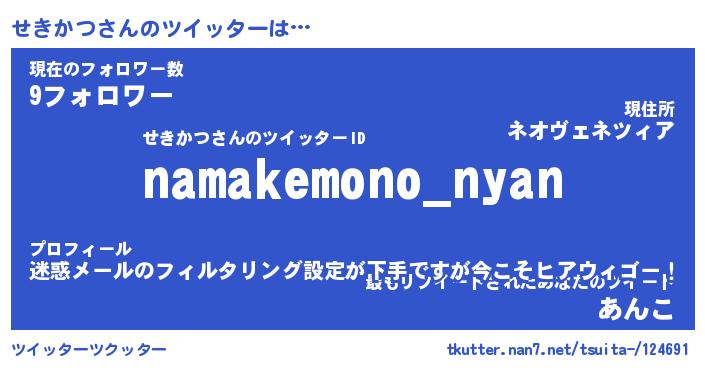 | 意味不明あだ名 | 『ペロリンせきかつ』『永久保存せきかつ』 |