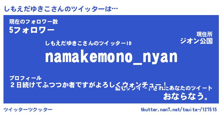 | ヘコむあだ名 | 『しもっふぃ~』『なまこ酢』 |