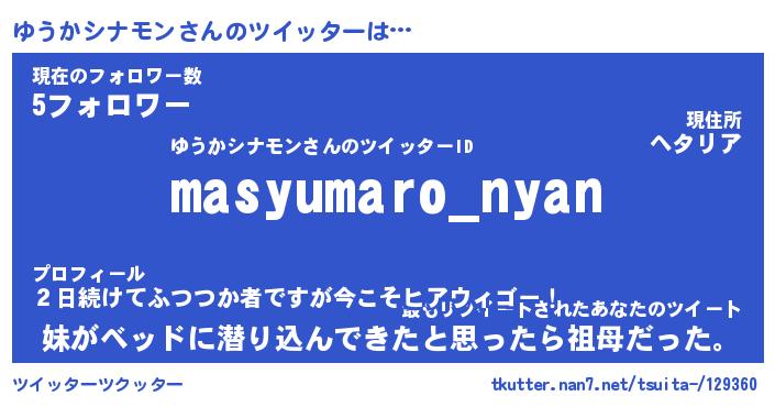 | 欧米人風あだ名 | 『マイケルゆうかシナモン』 |