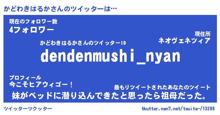 | ヘコむあだ名 | 『かどっふぃ~』『つくし』 |