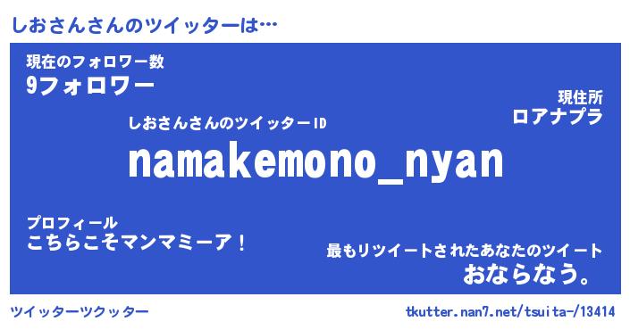 | 意味不明あだ名 | 『ペロリンしおさん』『永久保存しおさん』 |