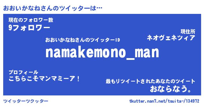 | 男性向けラノベタイトル風あだ名 | 『オオイカナネアートオンライン』 |