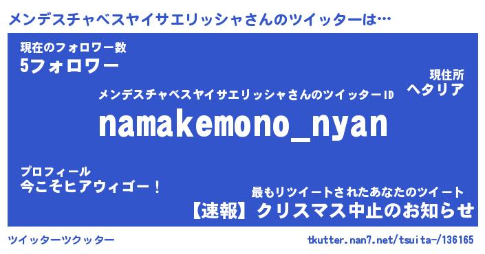 | 猫 | 猫の名前『メンデスチャベスヤイサエリッシャーにゃん』 |