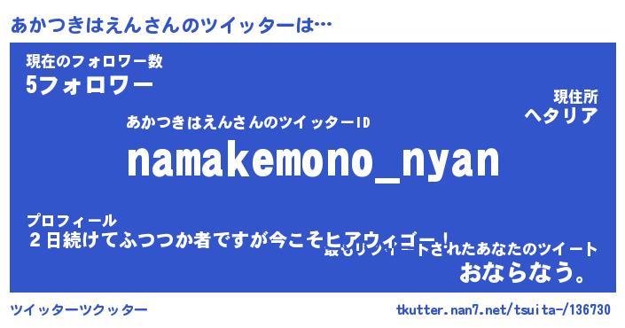 | 男性向けラノベタイトル風あだ名 | 『アカツキハエンアートオンライン』 |