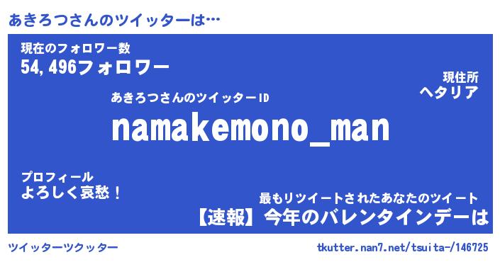 | 意味不明あだ名 | 『ペロリンあきろつ』『永久保存あきろつ』 |