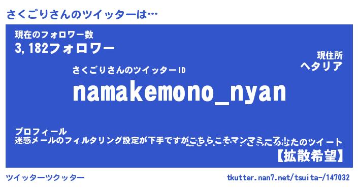 | ヘコむあだ名 | 『さくっふぃ~』『なまこ酢』 |