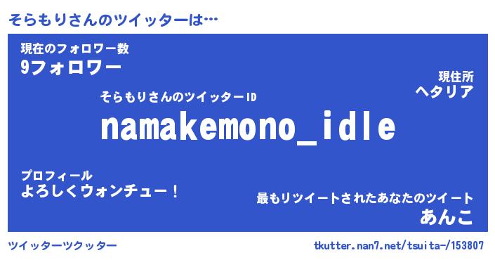 | 欧米人風あだ名 | 『マイケルそらもり』『ウサインそらもり』 |
