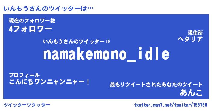 | 欧米人風あだ名 | 『マイケルいんもう』『ウサインいんもう』 |