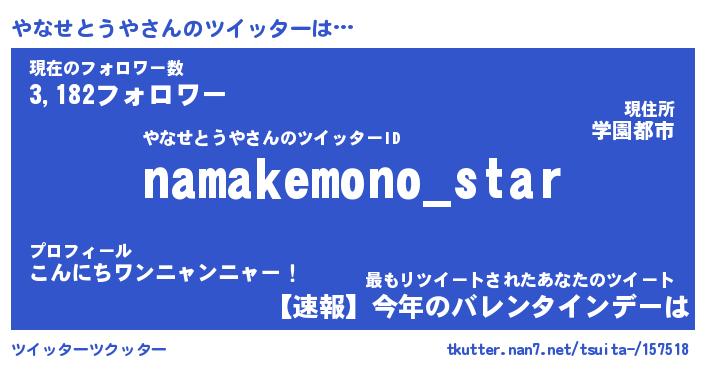 | ヒーロー風カッコイイあだ名 | 『スーパーヤナセトウヤ』『天弓騎士ヤナ』 |