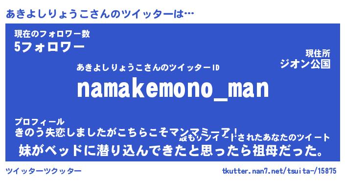 | 男性向けラノベタイトル風あだ名 | 『アキヨシリョウコアートオンライン』 |