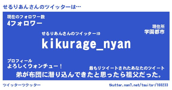 | 男性向けラノベタイトル風あだ名 | 『せるりあんの憂鬱』 |