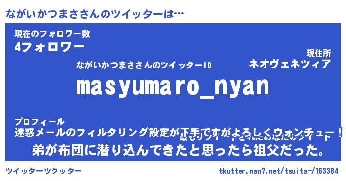 | 男性向けラノベタイトル風あだ名 | 『ながいかつまさの憂鬱』 |