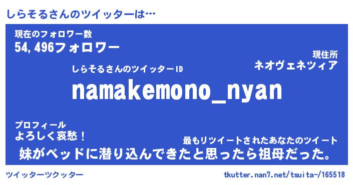 | 意味不明あだ名 | 『ペロリンしらそる』『永久保存しらそる』 |