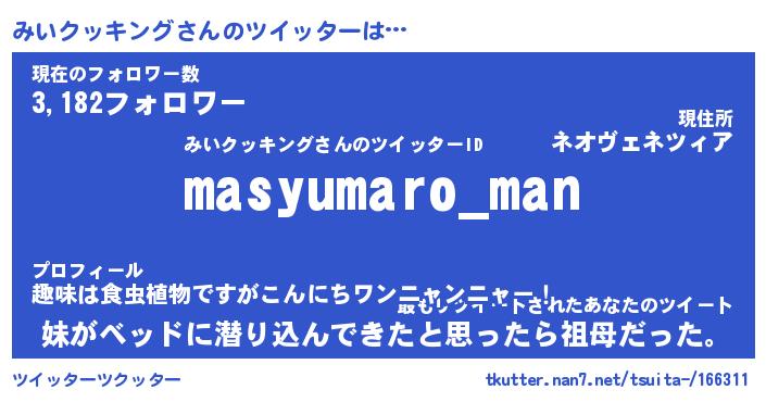| 男性向けラノベタイトル風あだ名 | 『みいクッキングの憂鬱』 |