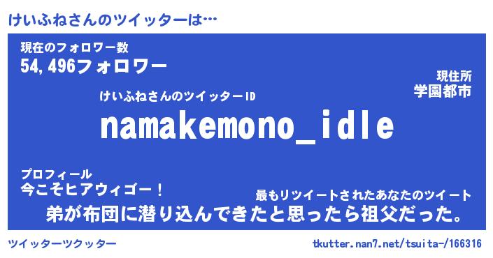 | ヘコむあだ名 | 『けいにゅー』『レバニラ』『けいを』 |